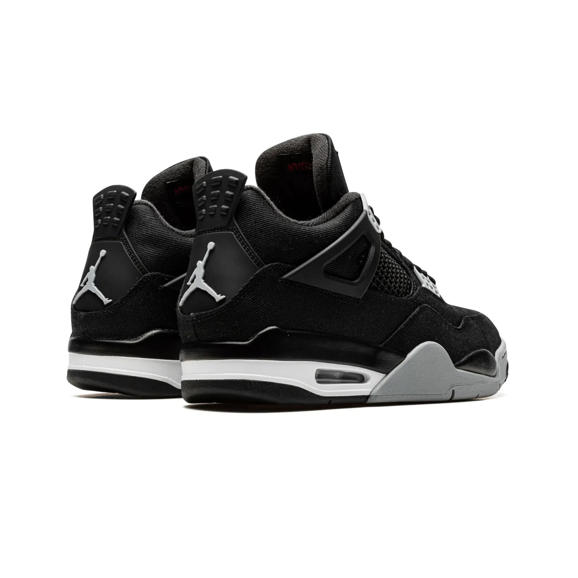 Iconic Air Jordan 4 silhouette in black canvas with grey and red accents