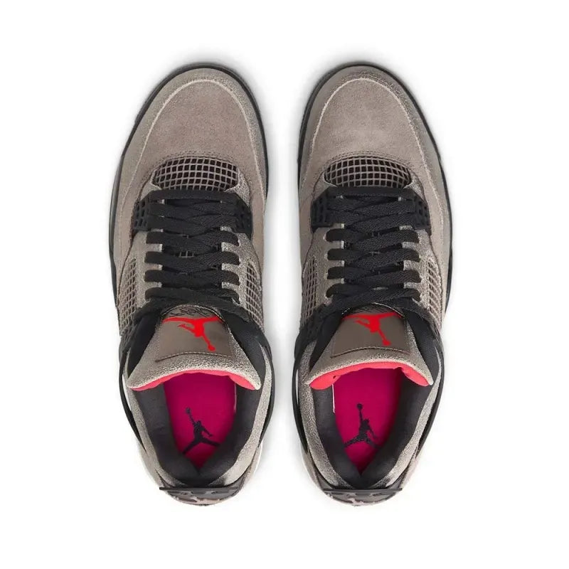 Iconic Air Jordan 4 silhouette in Taupe Haze and Black accents
